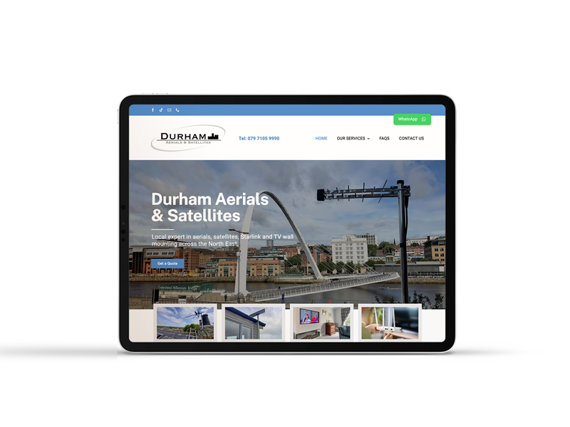 Durham Aerials & Satellites are your local experts in aerial and satellite installation serving homes and businesses throughout the North East. They cover a wide range of areas including Durham, Sunderland, Newcastle, Gateshead, Washington, Bishop Auckland, Spennymoor, Middlesbrough, North Tyneside, South Tyneside, Northumberland, and the Durham Dales.